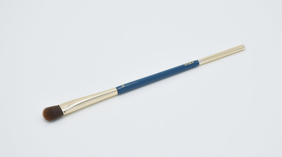 Deze plattere kwast met afgeronde hoeken verdeelt zowel poeder- als crème-oogschaduw over het ooglid . De stevigheid van de vezel zorgt voor een grote op- en afname van pigment, wat hem ook ideaal maakt voor het aanbrengen van los pigment en glitter.