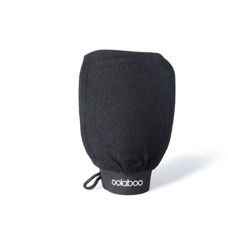 Een handschoen dat exfoliërend werkt op het lichaam. Verwijdert dode huidcellen én zelfbruiner.